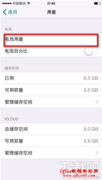进入用量页面后,选择“电池”里面的“电池用量”,点击并打开它,如下图所示