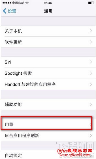 进入通用页面后,靠下半屏选择“用量”,点击并打开它,如下图所示