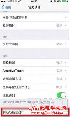 5.然后返回主屏幕,连按三下Home键,会出现下方的设置项。