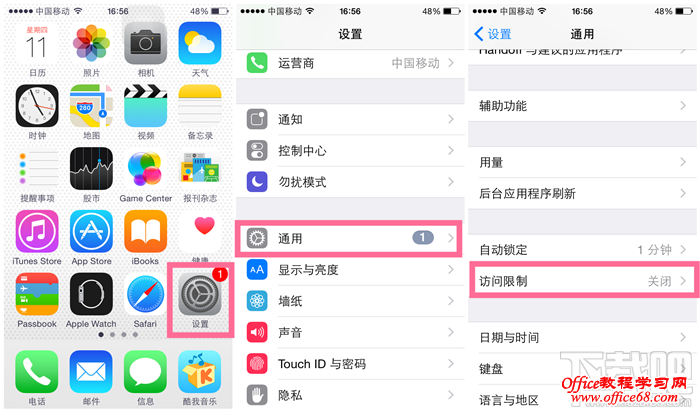 1、打开iPhone6【设置】界面,点击【通用】,选择【访问限制】。