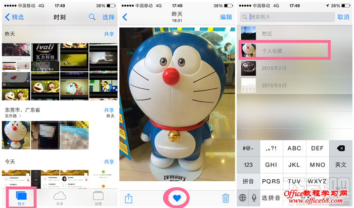 2. 当然我们也可以把照片收藏起来,方法是:在浏览图片时点击【心形】即可添加收藏,收藏后可以【相簿】的【个人收藏】中快速找到。(如图流程)
