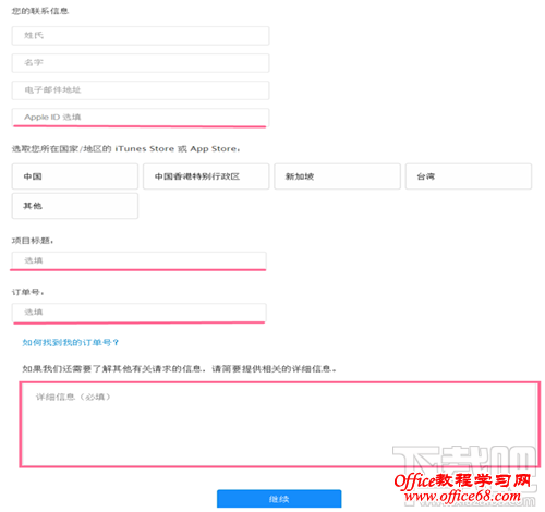 6. 现在终于来到“联系选项”:填写你的联系信息,并提供详细信息说明你要退款的理由,点发送即可。