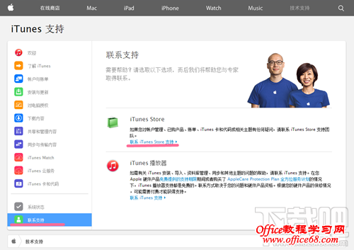 2.在最下面的,选中“联系支持”,点击“联系iTunes Store支持”