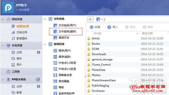 五:接下来,我们就可以在【PP助手电脑版】查看越狱文件系统了。如果无法查看,请重启一下设备