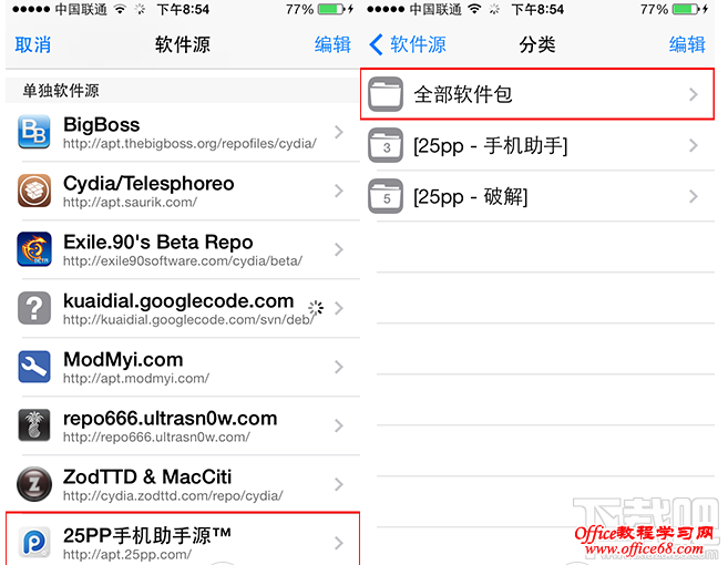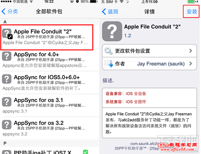 三、点击【25PP手机助手源】-- 全部软件包--【Apple File Conduit"2"】--【安装】-- 确定