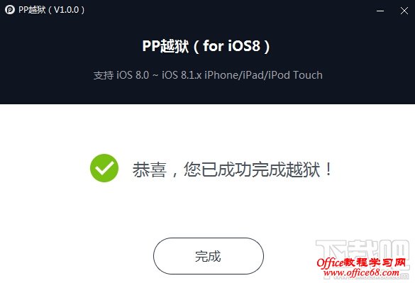 4.【PP越狱】工具开始为设备进行越狱,请耐心等待提示越狱完成: