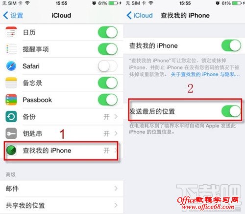 步骤2:点击“查找我的iPhone”一项进入,再开启“发送最后的位置”一项。