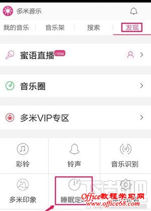 喜欢用多米音乐听音乐的你,又知不知道多米音乐可以设置定时关闭歌曲的功能呢?对于喜欢晚上听歌的朋友来说,这个功能是很实用。听着听着就睡着了,这样对我们的睡眠质量会有影响而且对身体也不好,下面小编就为大家介绍一下多米音乐怎么设置定时关闭歌曲。 1. 首先打开多米音乐,我们播放音乐的时候,窗口中点击右上角的发现打开