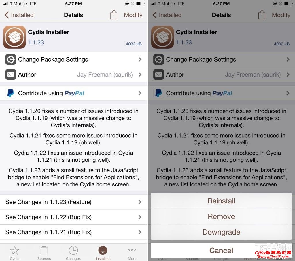 特别说明的是,降级应用或插件,不仅仅限于默认添加的源,第三方的源同样也能够降级了,有助于选择最适合的插件或者应用版本,提升稳定性。除了降级功能外,Cydia 1.1.23 还带来了其它方面的更新,大家可以看帮助了解一下。