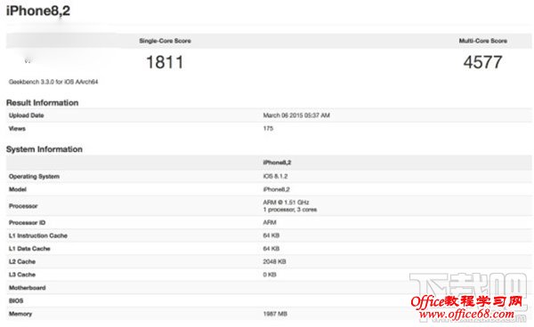 此前分析师郭明池爆料iPhone6s、iPhone6s Plus将把运行内存提升到2GB,其实,更早之前GeekBench也有iPhone6s的信息,当时显示的是2GB RAM。