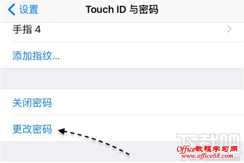 接下来在 Touch ID 与密码的设置列表里,点击“更改密码”一栏选项,如图所示