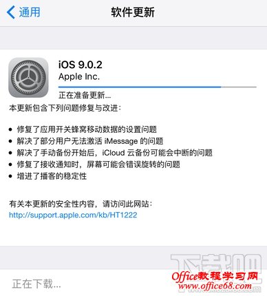 这时,iOS 9.0.2系统将自动进入下载更新升级状态,直到iPhone手机自动重启