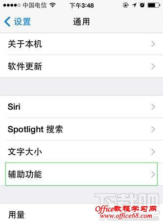 1、进入辅助设置 打开系统设置--通用,进入“辅助功能”设置界面。