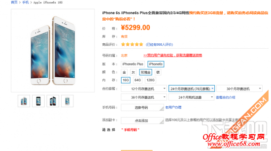 从联通给出的合约套餐可以看出,中国联通给予客户的选择显然要比移动要多,共有12个月、24个月、30个月和36个月四个合约期可供选择。而套餐档位方面,最低档位为76元/月、最高为596元/月。同样的我们选择和移动相同的200分钟通话的档位来计算两年下来,中国联通iPhone 6S合约机的总花费。