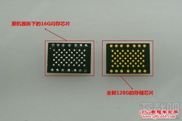 第六步:iPhone6这一台苹果的闪存芯片还是老样子由海力士,闪迪,东芝等老牌厂商供应。读写速度还是相当可以的,升级内存呢就是把这块芯片替换掉就好了。有的人就要问了6代不是说硬盘,基带CPU,码片,指纹,A8主CPU有加密的嘛,怎么能单换。是的传统方法来改内存的话就得换一套芯片,但是现在不一样了,出了硬盘序列号读写设备的神器,可以单换硬盘了,大家稍微懂一点的封釉可能都知道,苹果现对6代的激活验证机制是硬盘序列号,手机IMEI串号,还有指纹和CPU相匹配才能激活正常使用,每一个硬盘都有不同的序列号,换成别的不是一套的,手机就激不活没法正常使用,只需要把要更换的128G硬盘序列号改成和原来我16G硬盘序列号一样的就可以正常验证激活了。 下面是读写64位硬盘的神器