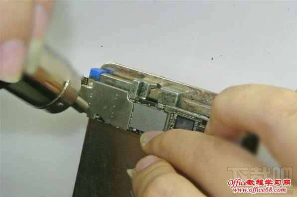 第十三步:先热风,把硬盘四周的原厂胶扣掉