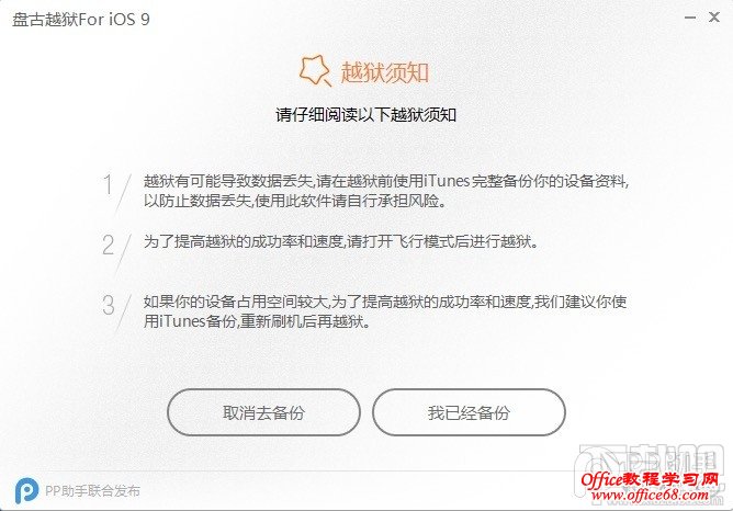 4. 请仔细阅读【越狱须知】后,点击【我已经备份】进入下一步