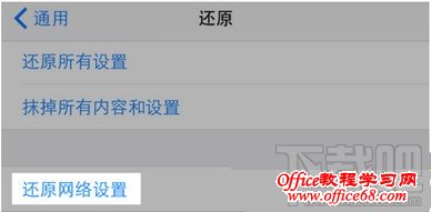 4、在还原列表中,请点击【还原网络设置】一栏,然后根据提示操作,便可以对 iPhone 系统的网络设置恢复了。