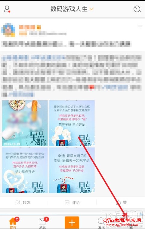 1、若是旧版本需要更新到新版本,打开微博应用,点击“我”。