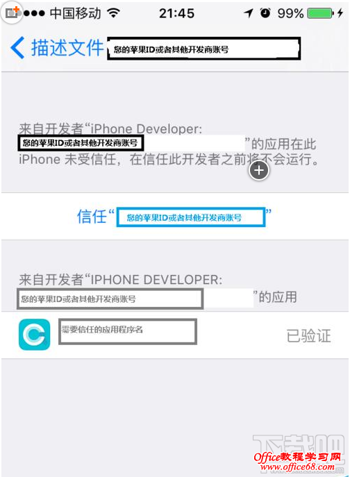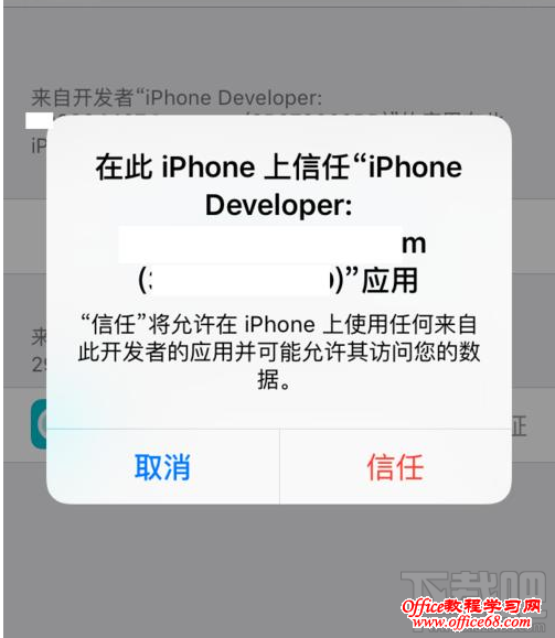 5、ios系统会傻乎乎地问你是不是信任自己的app在自己的机器上运行。我毫不犹豫地选择了信任
