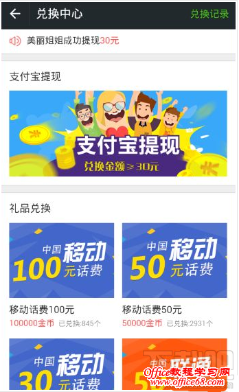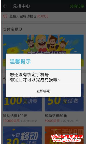 点击支付宝提现,不过需要绑定手机而且兑换金额30元以上