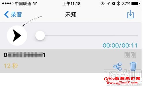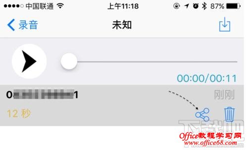8、如果想要把电话录音分享或是导出的话,请点击【分享】图标,如图所示