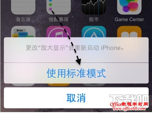 4:随后再点击底部弹出的“使用标准模式”选项,然后会重新启动手机来启用新的显示模式