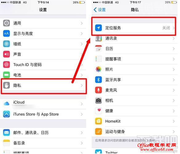 4、关闭“定位服务” 定位服务还是很费电的,现在很多APP都用到了这个功能,如果你的手机快没电了,可以暂时先关闭这个。 关闭方法:设置->隐私,关闭“定位服务”