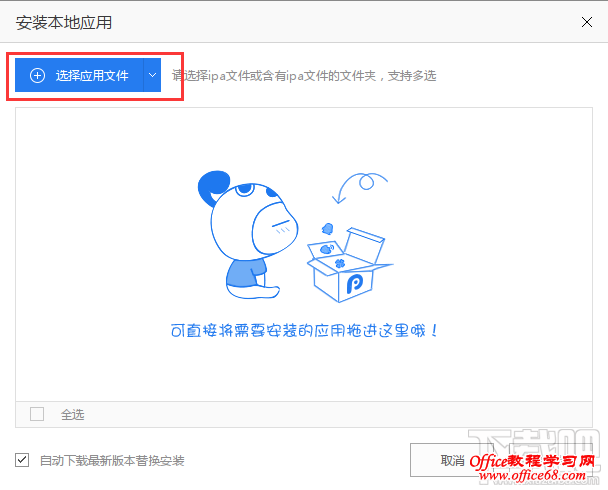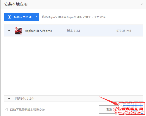 2、点击选择应用文件,找到你下载好的游戏,打开。如图: