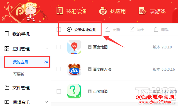 有时候因为网络原因,在电脑下载的游戏比较快,下载好的游戏怎么在pp助手安装到iphone上玩,今天小编给大家带来一篇教程,请看。 1、pp助手连入手机,点击应用管理,找到安装本地应用,详细位置步骤如图: