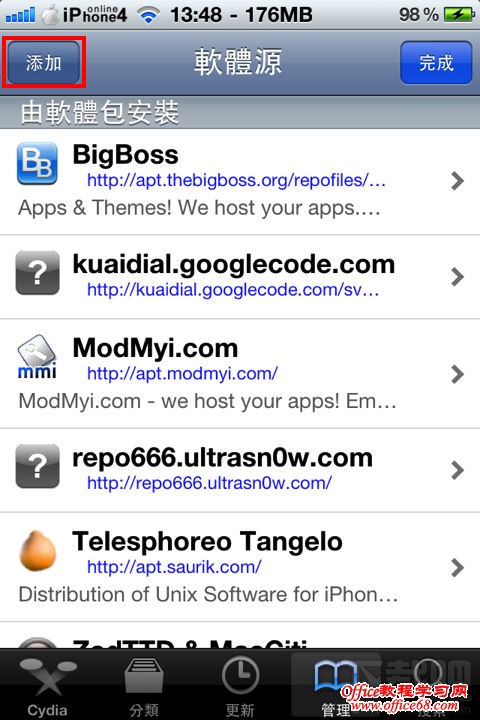 请把这两个加上去: 1.http://apt.weiphone.com/cydia/ 2.http://repo.modyouri.com/