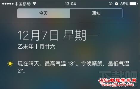 苹果手机当前的下垃通知中心支持显示天气信息,这个功能非常方便,可以让我们很方便地知道当天的天气情况,气温是多少。不过有的小伙伴的下拉通知中心列表中,可能没有出现天气信息,这里简单介绍下怎么解决这个问题的叫什么方法。 1、首先打开6s中的通知栏,看一下通知栏中有没有天气预报信息