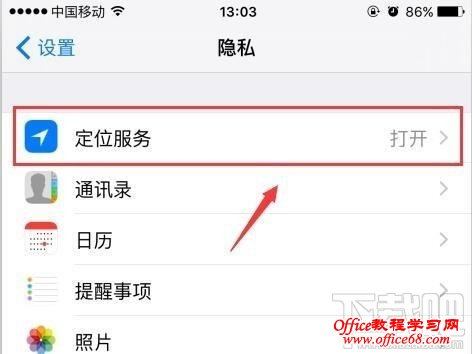 4、在隐私功能打开之后,就会在最上角显示一个【定位服务功能】,查看一下当下显示的状态,选择打开即可。