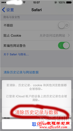 第二步,在本页中找到“清除历史记录与网站数据”,点击即可达到清除缓存的目的。