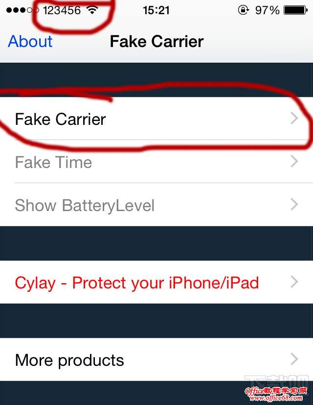 iphone运营商图标如何修改?之前小编和大家分享过不越狱修改iOS运营商图标,今天小编为大家推荐一款iOS越狱插件FakeCarrier,可以修改越狱后的iPhone运营商图标。 第一步,首先本地iphone要进行完美的越狱,然后从Cydia下载Fake Carrier这款软件,这款软件主要针对于iphone运营商的更改,进入Fake Carrier后,点击第一项,步骤如图: