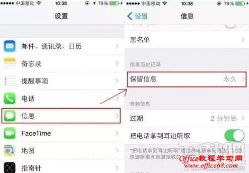 通过上述方法设置后,我们就能够自定义设置信息的保留时间了, 在手机中拥有三种设置方案,用户可选择30天、1年或永久存储,如果你的短信息较多的情况下,建议选择30天自动删除,如果只是发送文字内容的话,那么该项设置的作用不是很大! |
