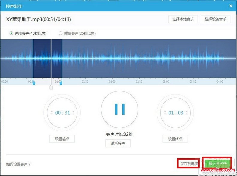 (3)可自定义设置起点和终点,也可以试听制作的铃声