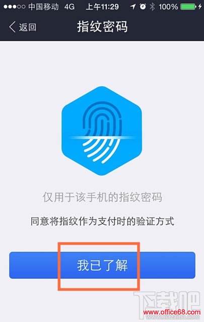 四、点我已了解,同意使用指纹作为支付时的验证方式,如下图: