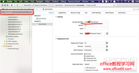 6. 登录开发者帐号之后,再次点击运行按钮,然后继续报错,提示你“An App ID with Identifier…is not available. Please enter a different string.”,这时候,我们需要前往到如下图所示的地方修改“Bundle Identifier”,修改成"com.xxx.GammaTest"(xxx 可替换成任何你想要的名字)。