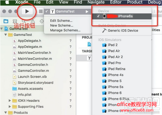 4. 把 iPhone 连接到 Mac,并选择你要安装的 iPhone,然后点击左边的运行图标。