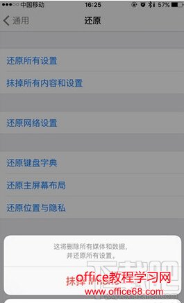 五:设备重启后,就可以像刚拿到手的时候来激活手机了。 注意:【还原所有设置】选项是仅抹掉所有安装的应用程序和通讯录等信息,但不会清空ROM存储器中的数据,但如果【抹掉所有内容和设置】选项的话,那么iPhone内部所有数据会恢复到出厂设置,ROM存储中的数据也会被清空,因此,在选择iPhone恢复出厂设置之前,请注意提前备份重要手机数据。 |