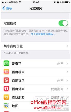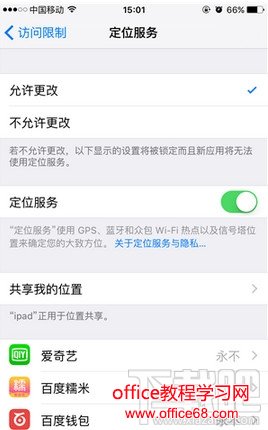 5、设置完成以后,我们再次打开iPhone上的“定位服务”选项,发现已经可以进行手动设置了。