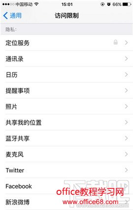 3、进入访问限制页面后,找到【定位服务】点击打开。