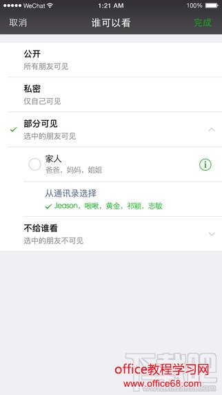 在此前的版本中,微信朋友圈内容只有根据分组选择可见范围的功能,用户可以选择公开(所有朋友可见)、私密(仅自己可见)、部分可见(选中的朋友可见)和不给谁看(选中的朋友不可见)。 新版本更新后,用户可以在部分可见(选中的朋友可见)下通过通讯录来选择不让谁看到这条朋友圈的内容。当然此前的分组选择也依旧可以用。 微信目前来说已经成为了很多人必不可少的社交软件,不过由于复杂的社交关系,很多用户在发朋友圈时肯定不希望某条朋友被某些人看到,比如你的BOSS。 临时选人功能相较于之前的分组选择更加便捷,操作性也更加灵活,有需要的小伙伴可以用起来。不过还是要注意,万一被拆穿了可见不好看了!