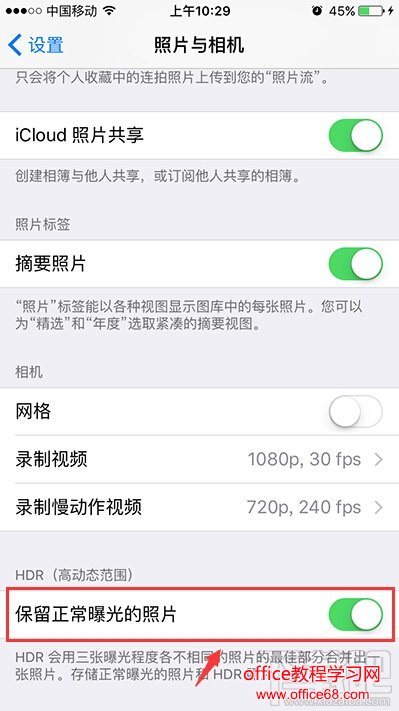 如果你的手机开启了HDR拍照模式,就会发现这些照片被保存了两遍。为了节省容量,可以在设置的照片与相机中关闭保留正常曝光照片的开关,只留HDR合成图。