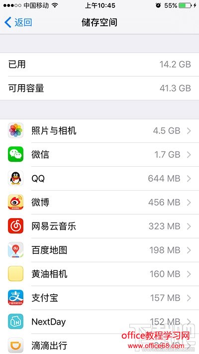 手机里的APP分别占用了多少的空间呢,我们可以在设置>>通用>>存储空间的列表中找到答案,选择性的删除一些不常用的APP,能让手机的容量得到更有效的利用。