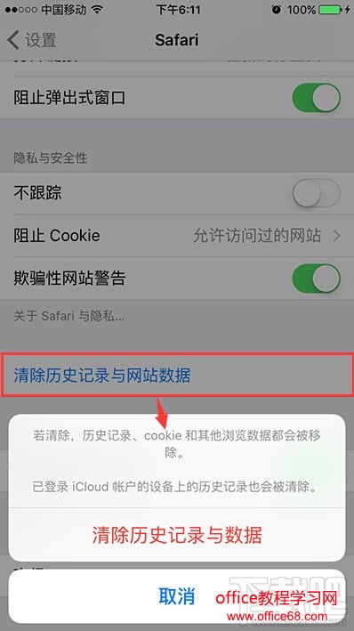 浏览器产生的缓存不容小觑,日积月累占用的空间很是惊人,养成定期清理浏览器缓存的习惯可以让手机的空间多出不止一点点。前往设置找到safari,轻点“清除历史记录与网站数据”即可释放空间。