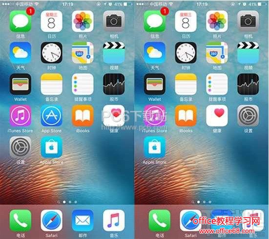 5.隐藏效果,左图为隐藏前,右图为隐藏后。如果想要在隐藏期间打开App Store应用,可以在搜索中输入App Store,即可显示App Store应用应用。