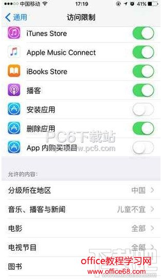 4.进入页面后,找到【安装应用】选项,关闭该功能即可隐藏App Store应用。