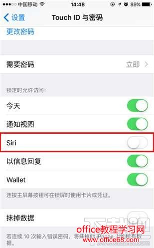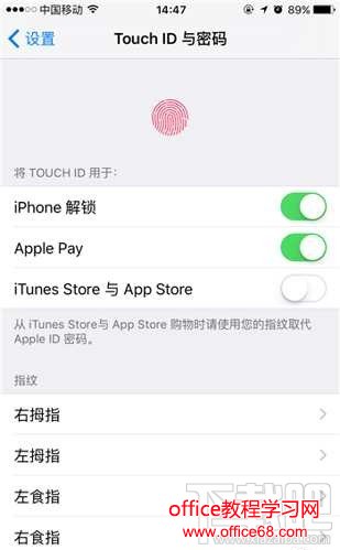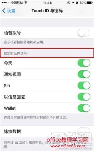 2.打开Touch ID与密码时需要输入解锁密码,才能进入该页面